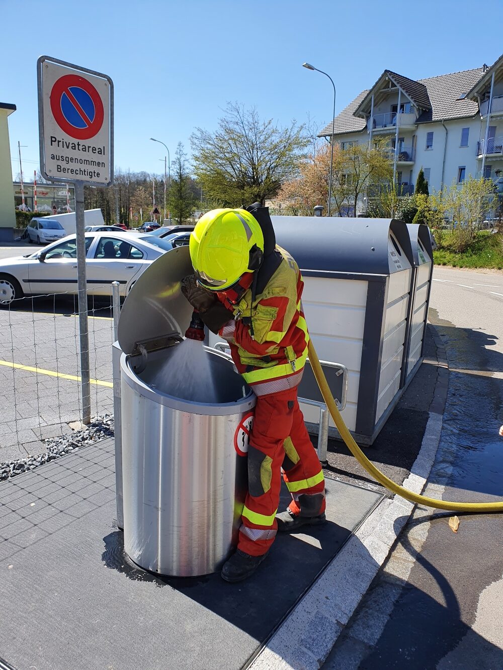 Bereits zum zweiten Einsatz an diesem Tag wurde die FW Matzingen-Stettfurt um 14.09h zu einem brennenden Unterflurcontainer an die Juchstrasse gerufen.