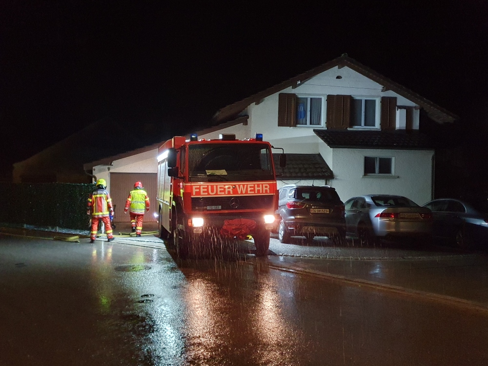 Die ausrückende Kleingruppe des Zug 1 der Feuerwehr Matzingen-Stettfurt, konnte mit Hilfe von Wassersaugern und Tauchpumpen die Lage entschärfen.