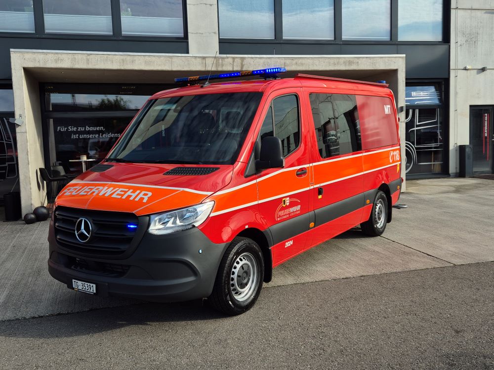 Der Mercedes Sprinter 317 CDi mit neun Sitzplätzen und einem Wasserwehr-Modulwagen das im Heck untergebracht ist, ersetzt den alten VW T5 mit Jahrgang 2005.
