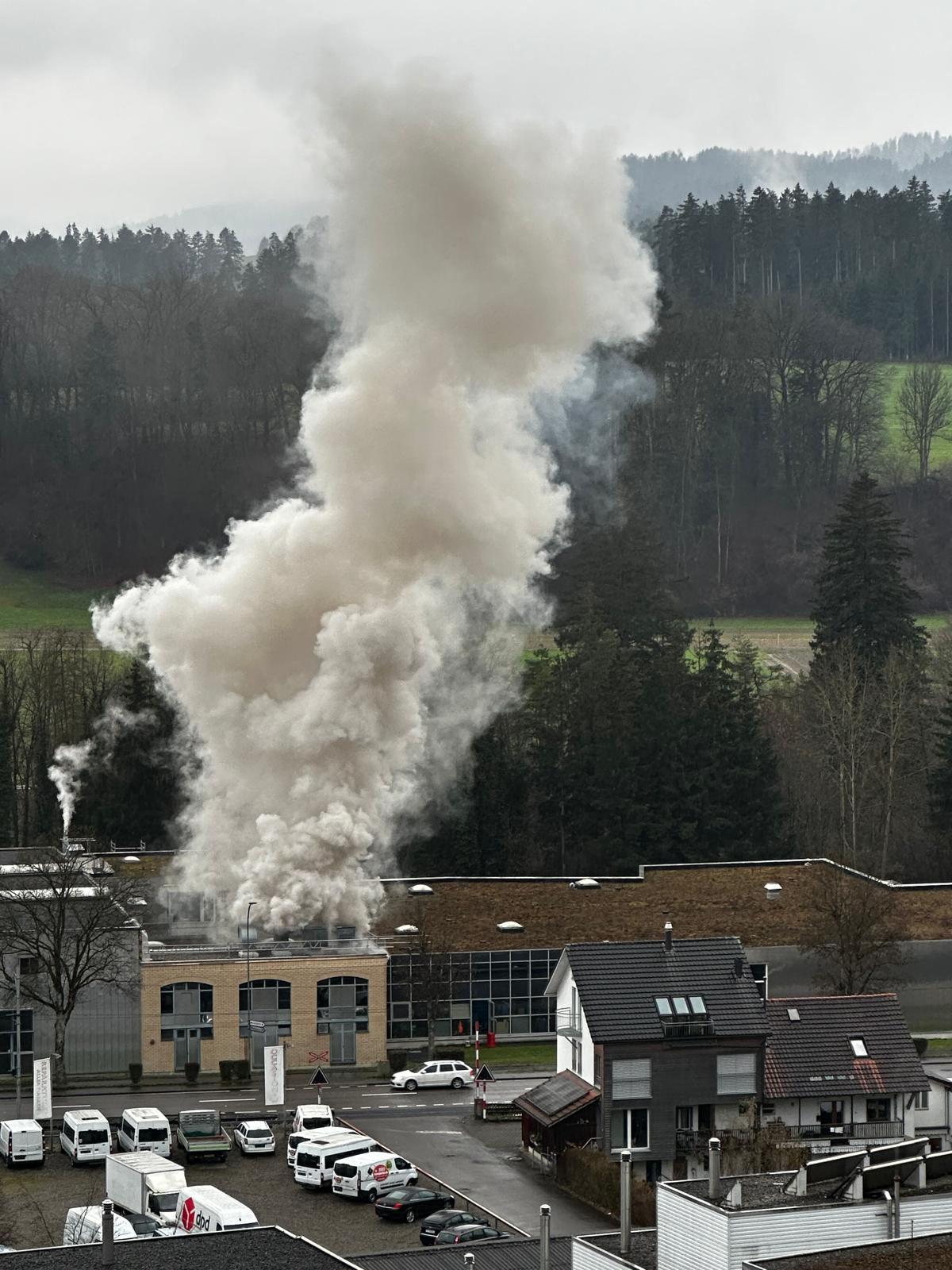 Der Kantonalen Notrufzentrale wurde eine starke Rauchentwicklung aus dem Dach einer Firma gemeldet. (Bild: Kantonspolizei Thurgau)