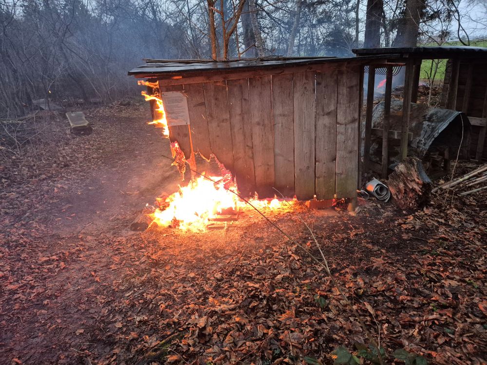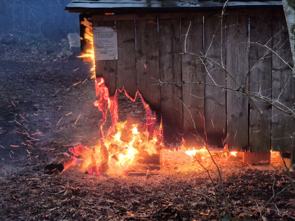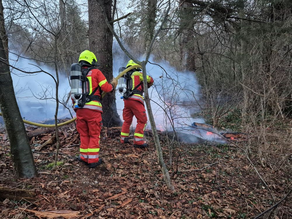 Holzunterstand brennt in Naturschutzgebiet Grütried