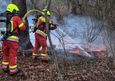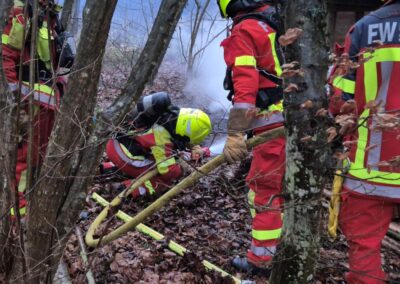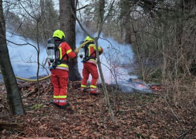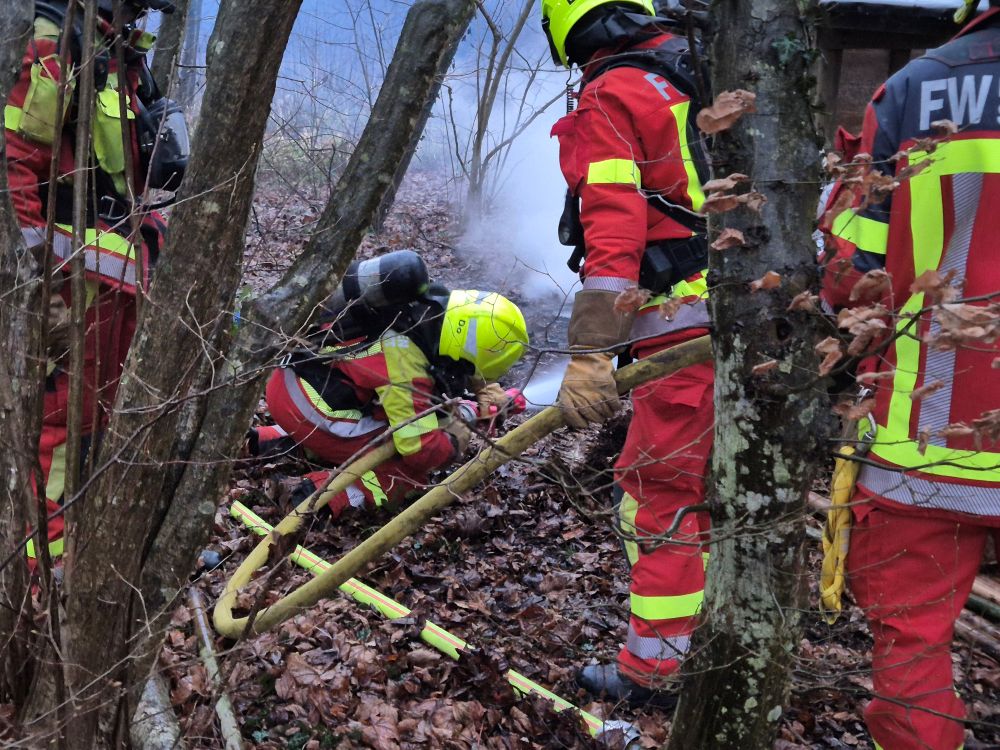 Das kleine Bodenfeuer und der brennende Holzunterstand konnte schnell gelöscht werden.